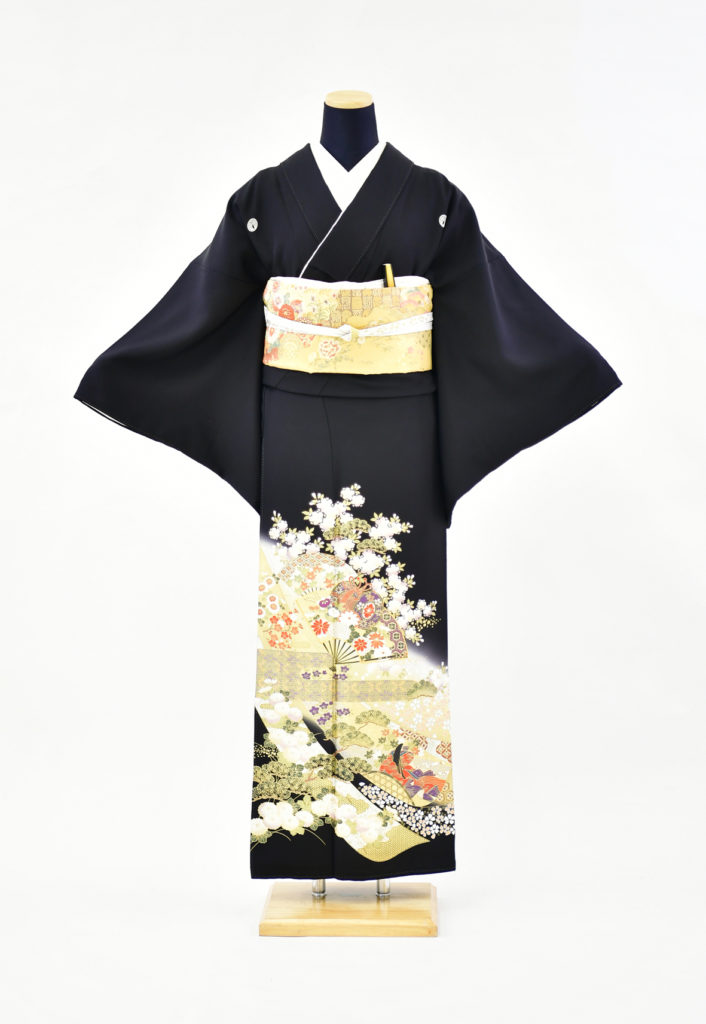 四季の花々と扇の柄は豪華な印象と華やかな着姿で演出してくれます。