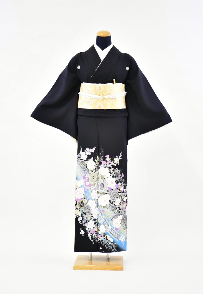 デザイナーの桂由美ブランドの留袖です。ブルーのぼかしと金彩や胡紛の煌びやかな絵柄が印象的です。