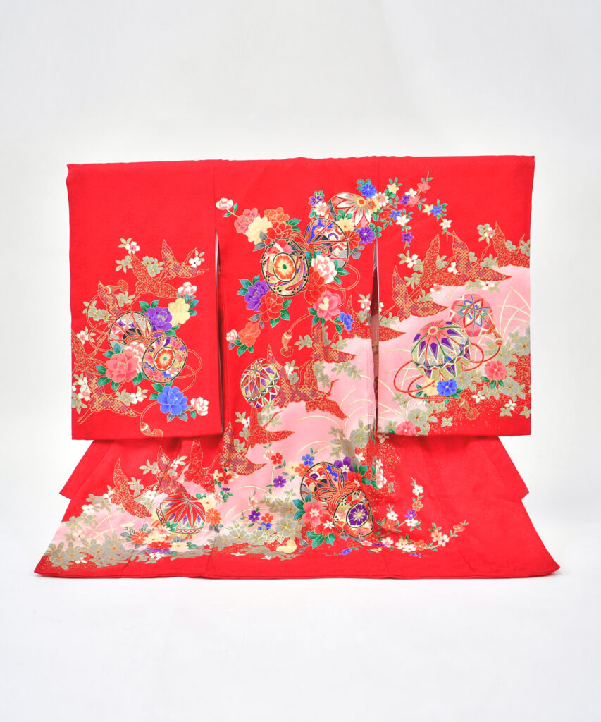 色鮮やかな小花をちらしたの王道の柄付けの着物です。