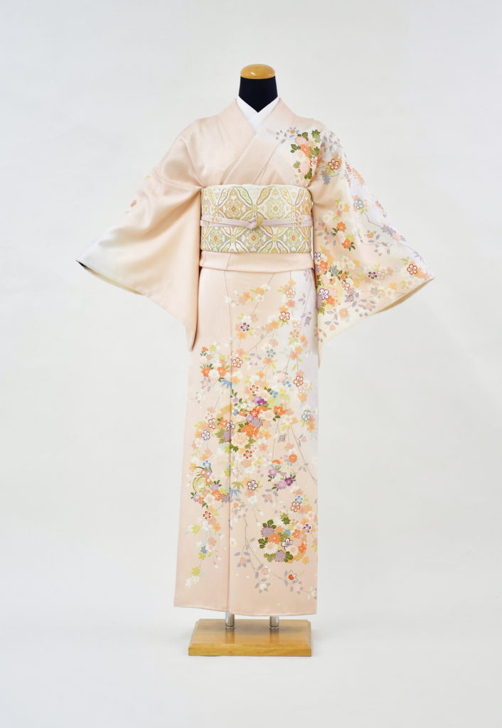 ピンクの地に可愛らしい小花の柄で、華やかな着姿を演出します。
