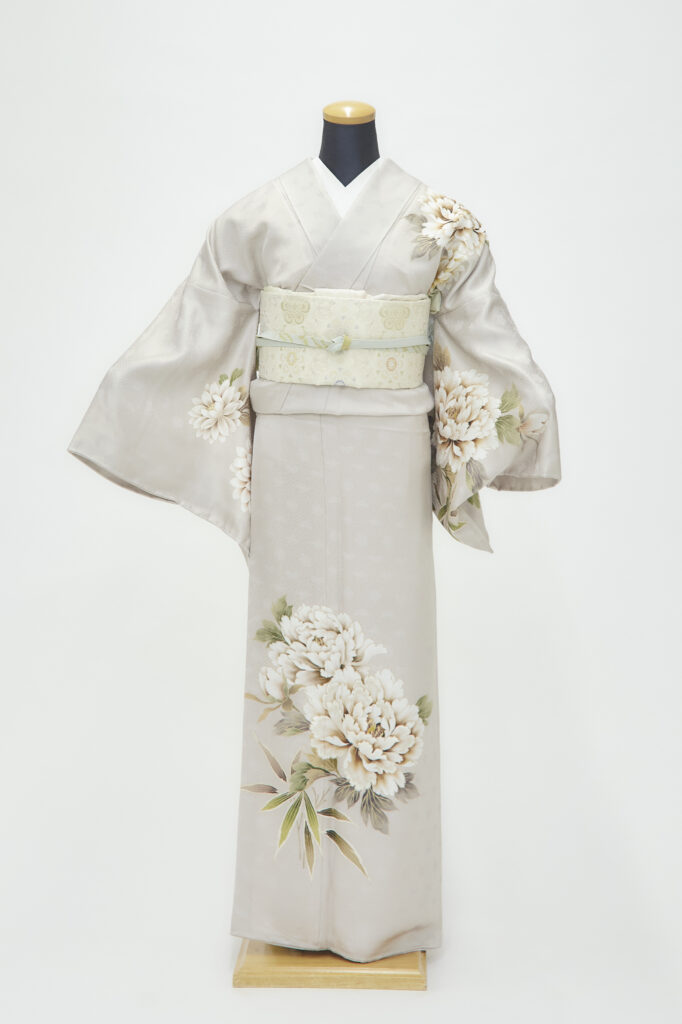 優しい色使いながらも大きな花柄で華やかな印象の訪問着です。